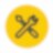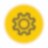 A roundel appears in the middle of the screen, obstructing the red car and the clock but leaving the two orange robotic arms in view. The roundel contains a blue background fill and displays two animations of grey spinning gears. The background fill of the roundel then changes to yellow and the animation of the gears deteriorates simultaneously.