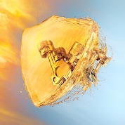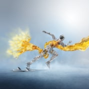 Visual Transition: We cut to a red frame where white and gold gas particles fly in from the left hand side of the screen. When the gas particles reach the centre of the frame, they evolve into the Shell Helix Ultra golden bottle.